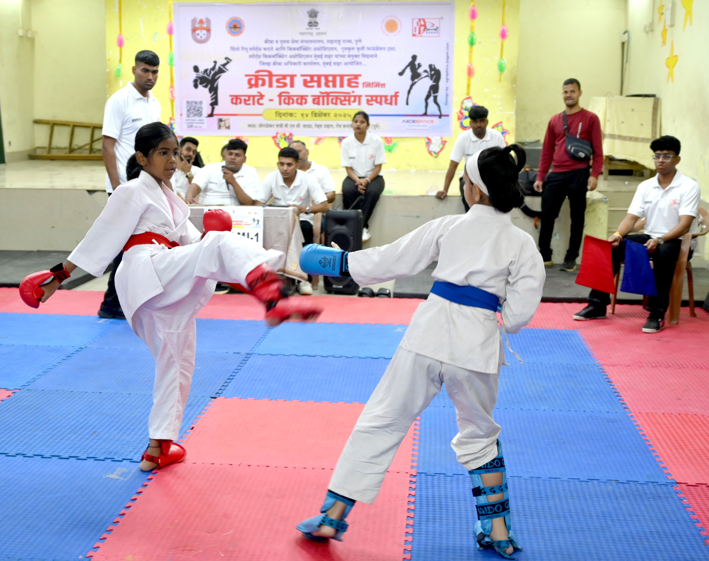 क्रीडा सप्ताह २०२५–२६ निमित्त आयोजित किक बॉक्सिंग स्पर्धेच्या